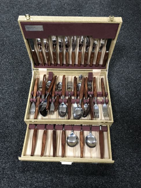 A canteen of stainless steel teak handled cutlery by Glosswood of Sheffield