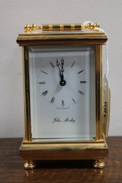 A modern John Mosley brass carriage clock, eleven jewel movement with platform escapement