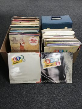 Two boxes containing assorted LP's including NOW albums