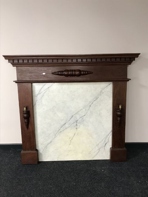 An oak fire surround with marble back