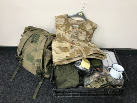 A large quantity of military surplus clothing, body armour etc