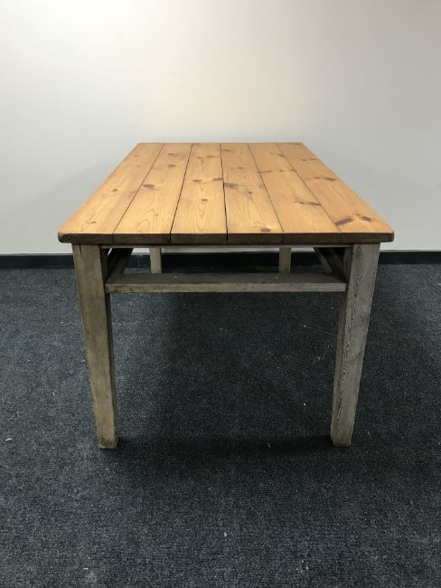 A pine plank top kitchen work table