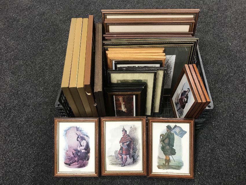 A box containing a quantity of assorted framed prints
