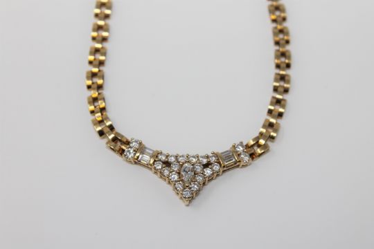 Fine quality 18ct necklace set with round baguette and marquise diamonds, approximately 1.8ct. 18 grams