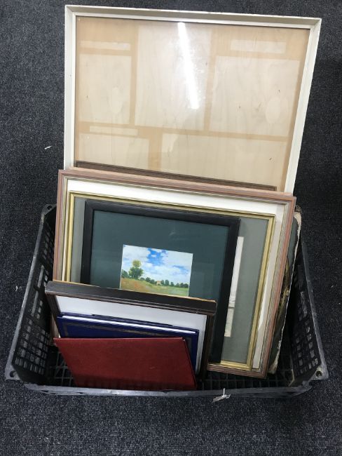 Two crates containing a large quantity of picture frames, photo frames, photograph albums, pictures and prints