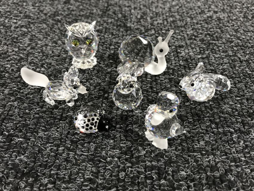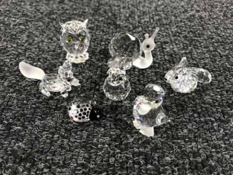 Seven un-boxed Swarovski Crystal figures; owl, snail, two rabbits, fox, ladybird and duck