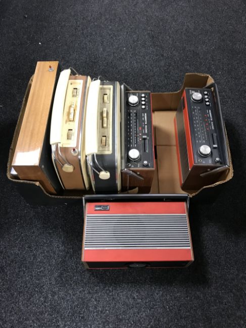 A box of six radios including three Roberts, two Bush and one Ultra