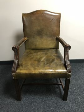 An early twentieth century Gainsborough style armchair upholstered in a leather button covering