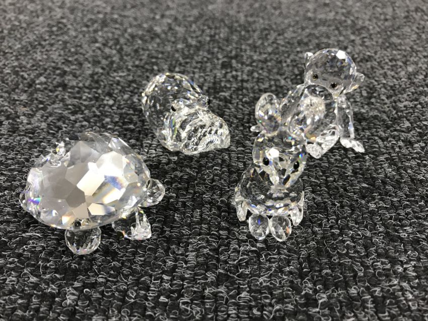 Four un-boxed Swarovski Crystal figures; monkey, rabbit, hippo and tortoise.