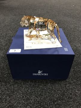A boxed Swarovski Crystal Society Figure of the Year 2010 Endangered Wildlife, Tiger, with certificate