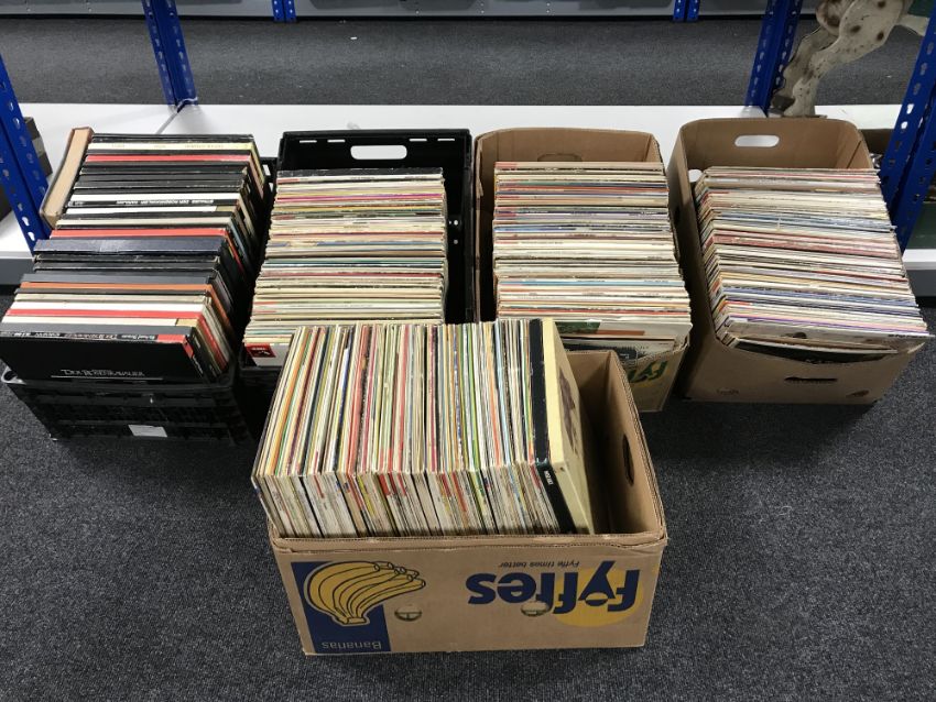 Five boxes containing LP's and box sets, classical, on labels including Decker, EMI, HMV, etc
