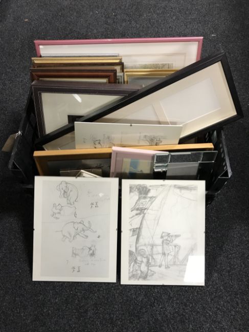 A box containing a quantity of contemporary framed prints, including Winnie the Pooh