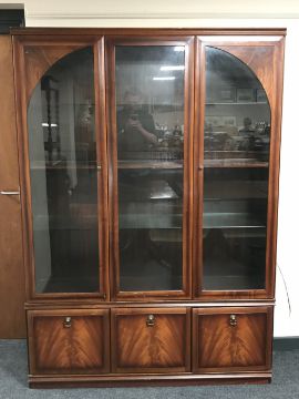 A triple door display cabinet fitted cupboards beneath