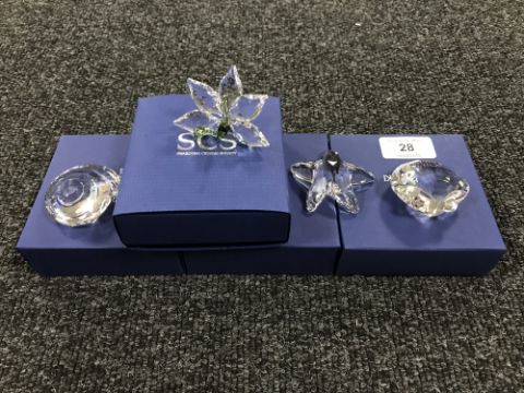 Four boxed Swarovski Crystal figures; a star fish, clam, seashell and an orchid.