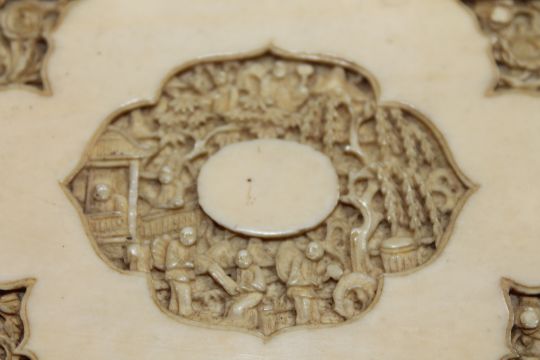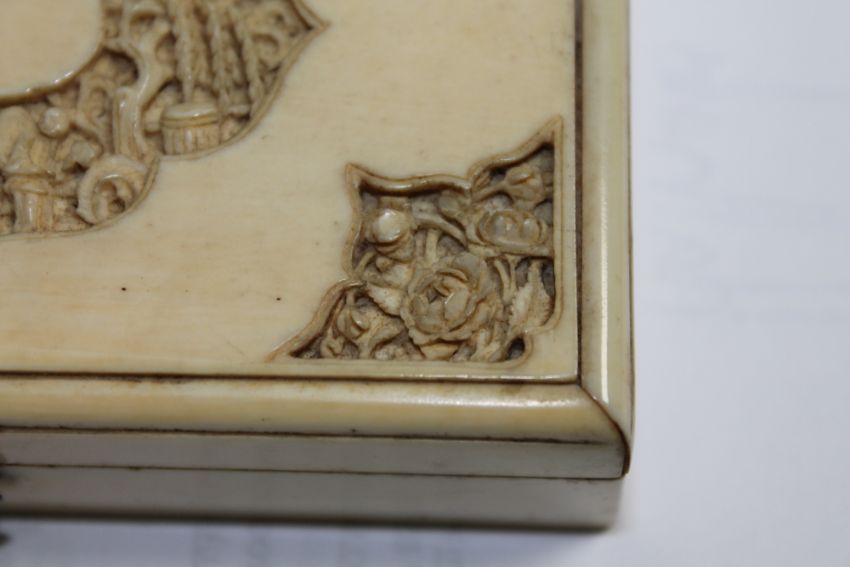 112.2g. The box is in good condition. This has a fitted interior for what would appear to be a pendant and a pair of earrings. It comes with three other small pieces of ivory.