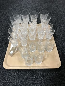Two trays containing a collection crystal glasses