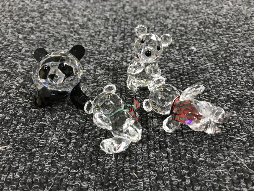 Four un-boxed Swarovski Crystal figures; three teddy bears and a panda