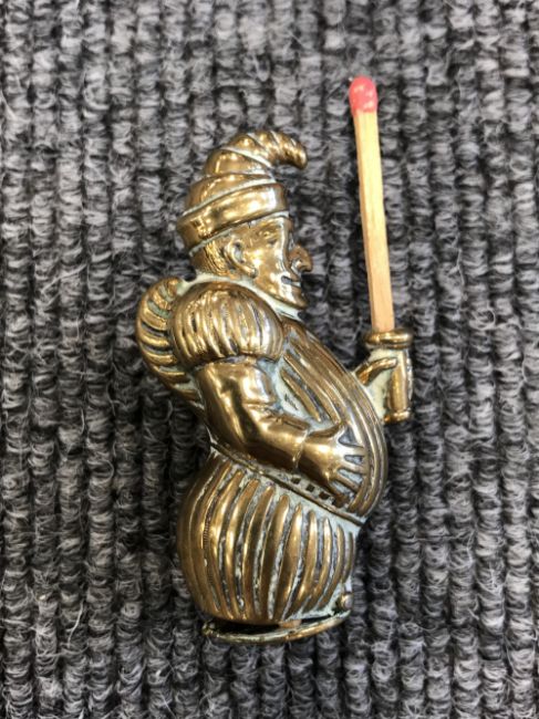 A brass Mr Punch vesta case