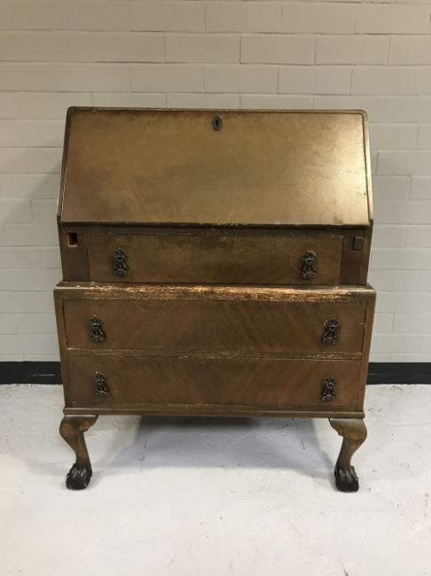 A mahogany writing bureau on claw and ball feet