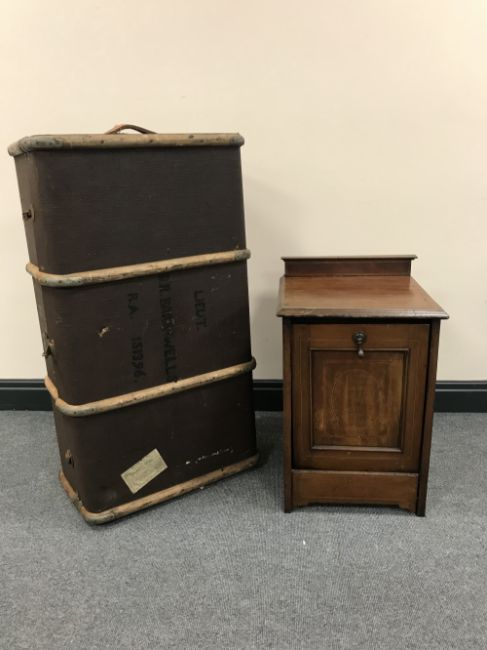 An early 20th century wooden bound trunk and a Victorian coal receiver
