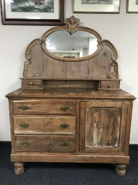 An antique pine mirror backed sideboard