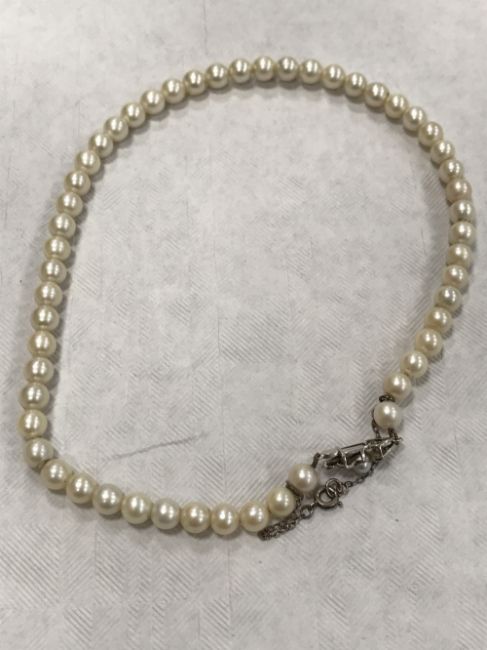 Fine quality strap of graduated pearls on a white gold diamond clasp