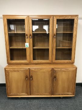 An Ercol light elm glazed triple door bookcase with cupboard base, width 136 cm