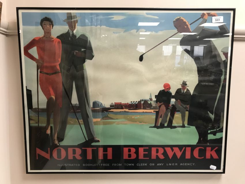 Three framed railway posters - North Berwick, East Coast Joys and Tynemouth and three other un-framed