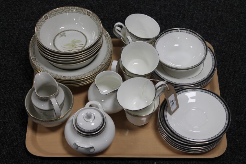 A tray containing twenty two pieces of Royal Doulton Saraband tea china, together with ten Royal Doulton White Nile bowls, White Nile sugar basin and milk jug