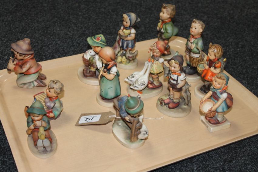 A tray containing thirteen Goebel figurines