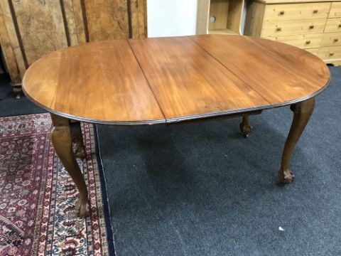 A Victorian mahogany wind out table with leaf on claw and ball feet