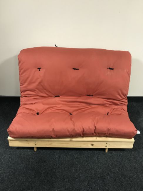 A pine futon with mattress
