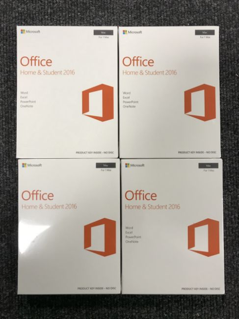 Four copies of Microsoft Office Home and Business 2016 for Mac, boxed and sealed
