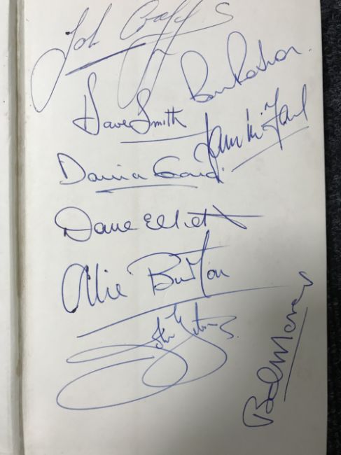 One volume : The Newcastle United F.C. Story by John Gibson, signed by various players including Bob Moncure