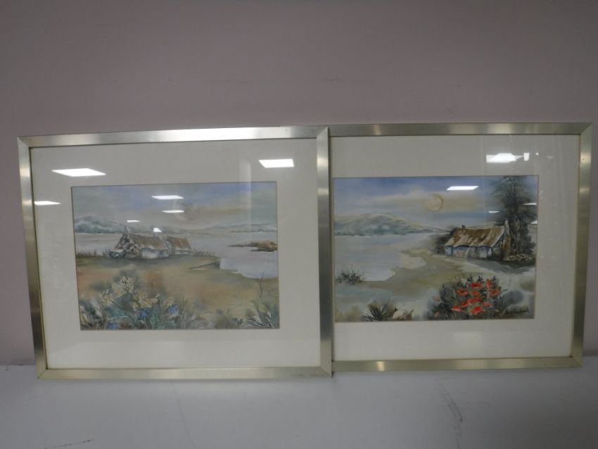 Two framed G R Carter oils - rural scenes and two brass framed pictures