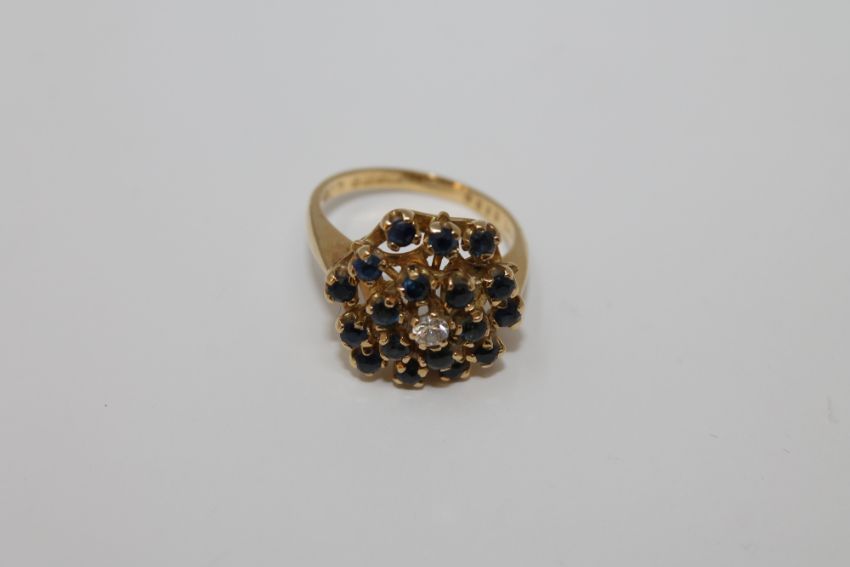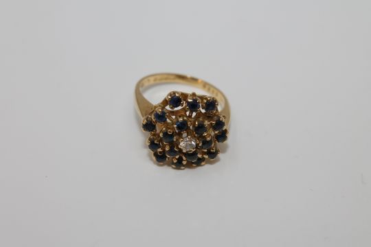 An 18ct gold sapphire and diamond cluster ring, 7.4g