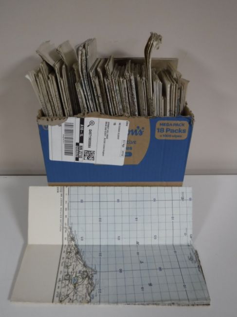 A box containing war time ordnance survey maps