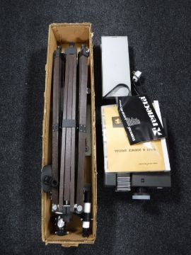 An Ernest F. Carter telescope on folding stand together with a projector and screen