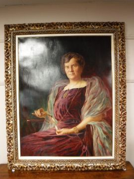 Twentieth century school: A Portrait of a Lady Wearing a Flowing dress Holding a Lorgnette, oil on canvas, 85cm x 110cm, framed