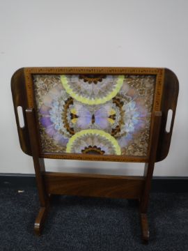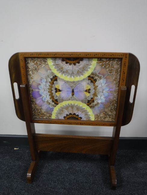 An inlaid butterfly tray on stand