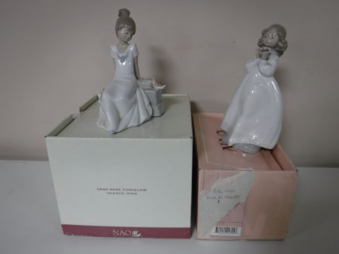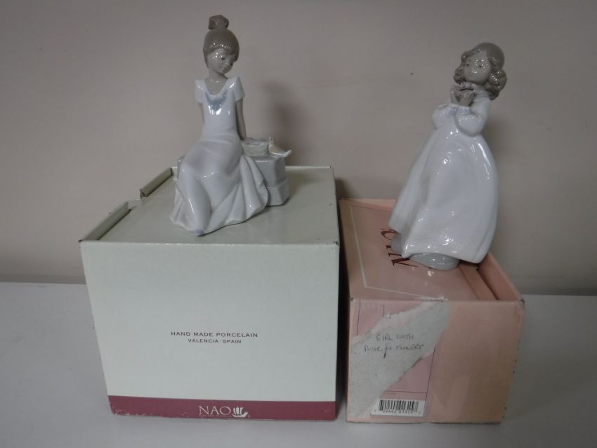Two Nao figures, 'Girl Seated', 'Girl Holding Flower'(boxed)