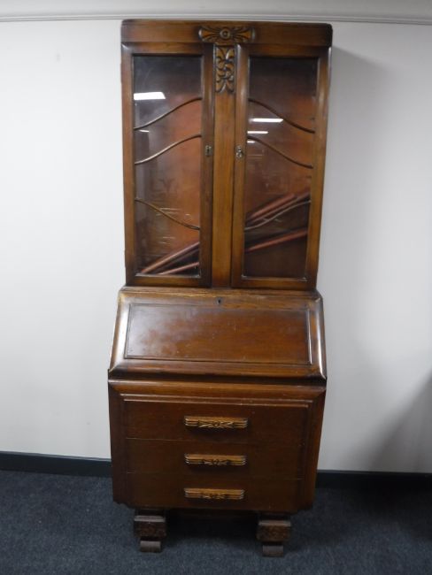 An oak bureau bookcase