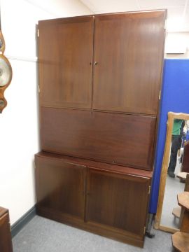 A Danish mahogany secretaire cabinet with triple door sideboard
