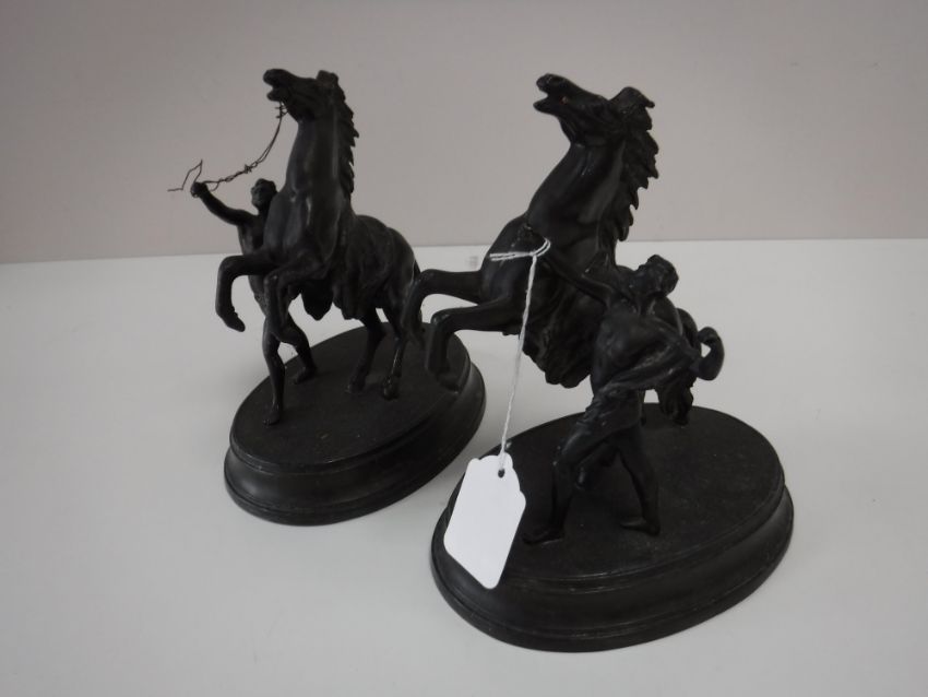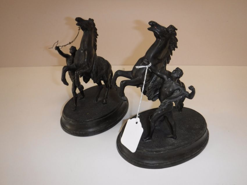 A pair of spelter figures - rearing horses