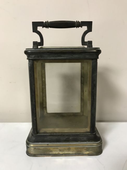 An antique brass carriage clock case