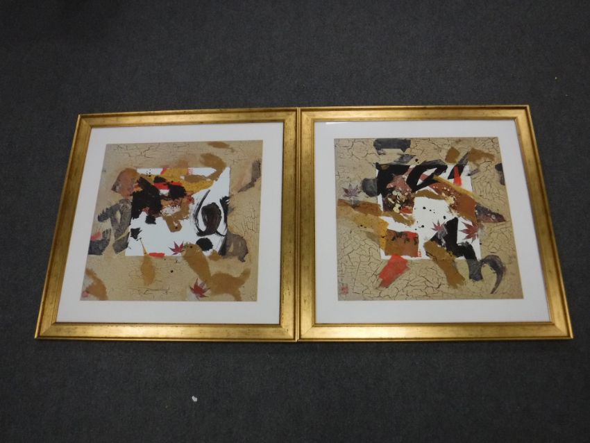 A pair of gilt framed copper prints