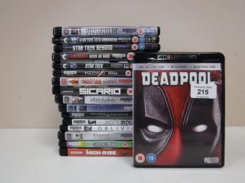 Sixteen 4k Ultra HD disks, including Deadpool, X-Men, Suicide Squad, etc