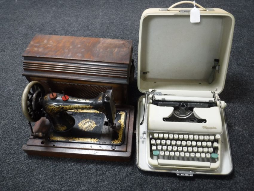 A cased Olympia typewriter and a mahogany cased Singer sewing machine