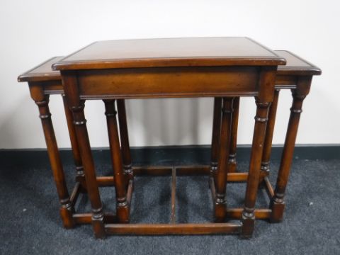A nest of three contemporary mahogany tables