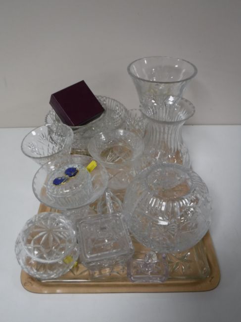 A tray containing a collection of twentieth century crystal